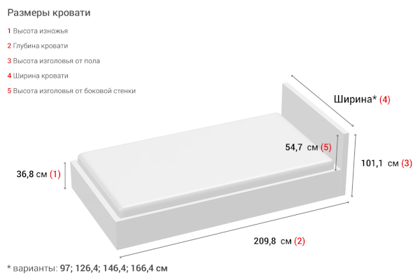 Рекомендуемая высота матраса: 20 см