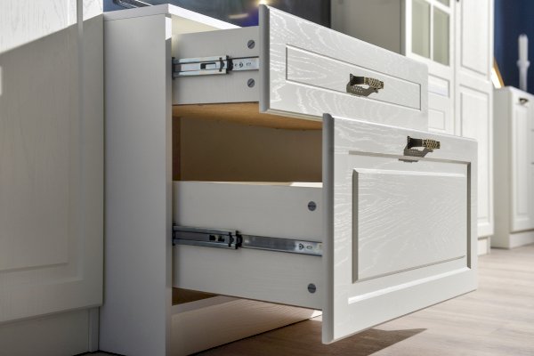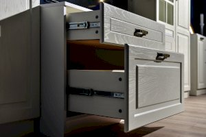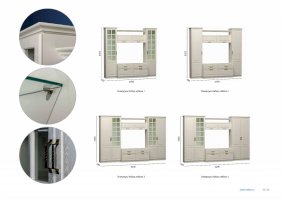 Фурнитура: Распашные двери на четырехшарнирных петлях. Горизонтальные откидные двери на газлифтах. Выдвижные ящики на шариковых направляющих.