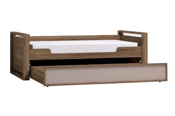 Детская или подростковая кровать-тахта с большим ящиком глубиной 182 мм на выкатных роликах. Его можно использовать как место для хранения постельного белья или как дополнительное спальное место для незапланированных гостей. Для полноценного спального места достаточно убрать разделитель и положить матрас. Размер матраса для основного спального места 190х90 см. Размер матраса для дополнительного спального места: 190х80 см, высотой до 18 см. Дополнительные боковые ниши в кровати помогут подростку держать под рукой необходимые перед сном вещи. Бонусом для современных детей станет компактная встроенная в кровать USB зарядка для телефонов и планшетов.
