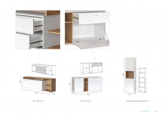 Фурнитура: Распашные двери на четырёхшарнирных петлях; выдвижные ящики - фолдинги на шариковых направляющих.