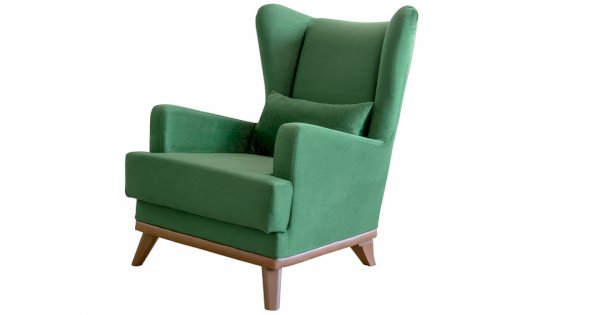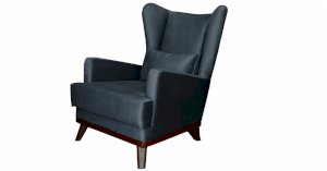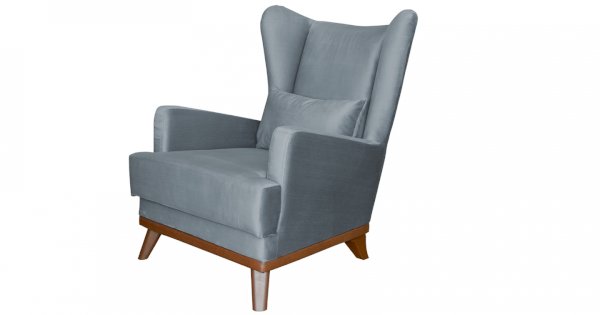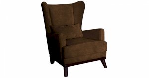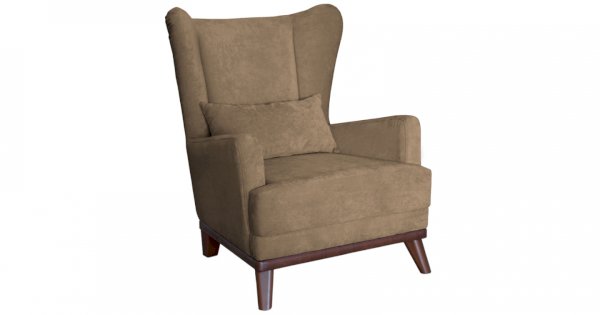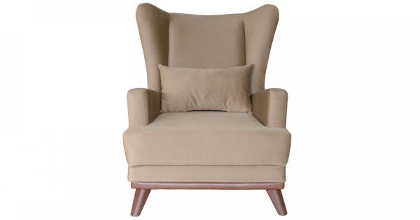 Высокая спинка с наклоном и мягкие подлокотники обеспечивают удобную посадку, дополнительный комфорт создает декоративная подушка. Царга кресла обтянута искусственной кожей в цвет опорам.