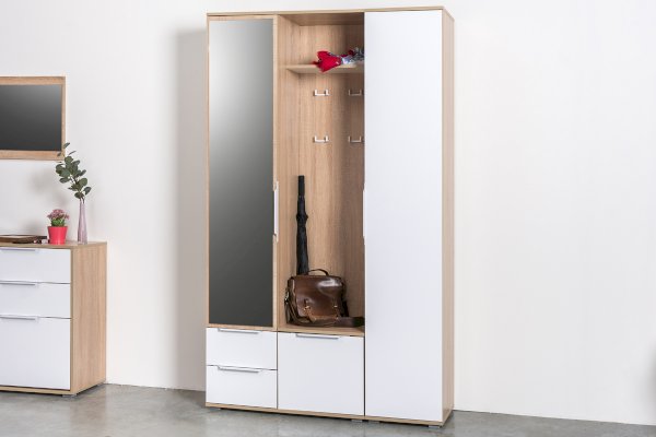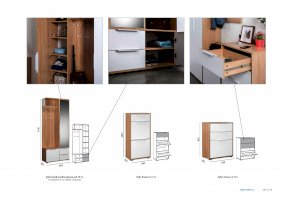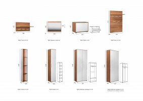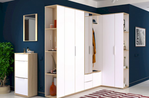 В линейке присутствуют модули с нестандартной конструкцией, которые не оставят без внимания узкие углы, повышая вместимость прихожей в разы.