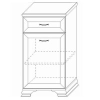 Конструкция модуля включает закрытое отделение с полочкой и выдвижной ящик. Тумба имеет компактные размеры, ширина 494 мм и глубина 383 мм, такие габариты очень актуальны для небольших прихожих.