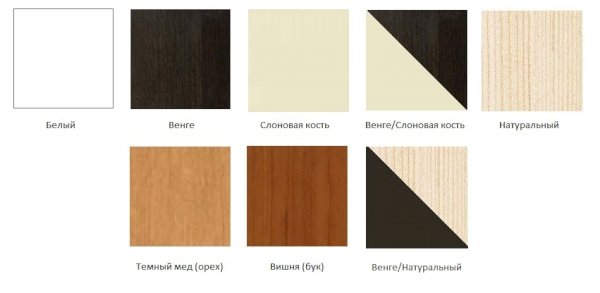 Цвета: Белый, Венге/Слоновая кость, Слоновая кость, Натура, Венге/Натура, Бук, Темный мед, Венге