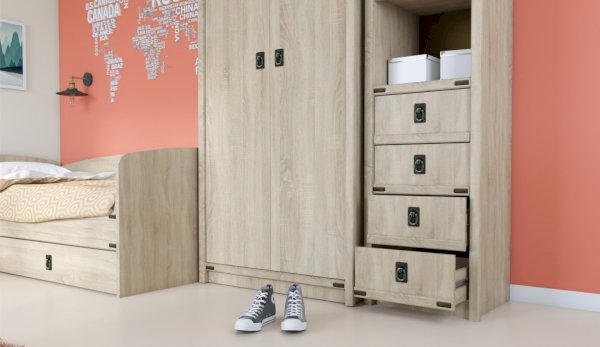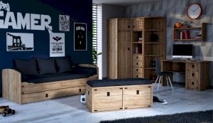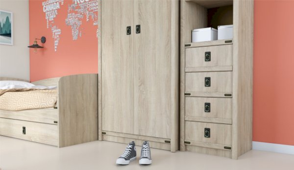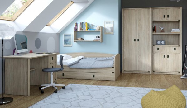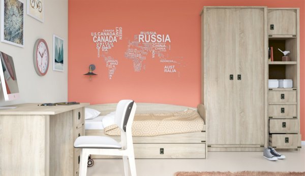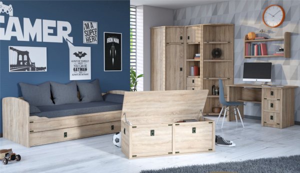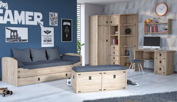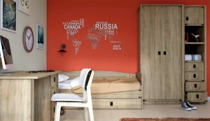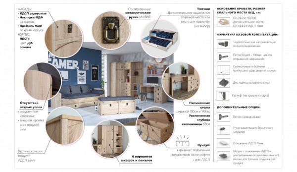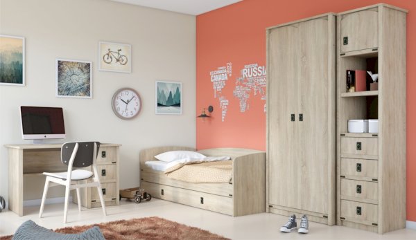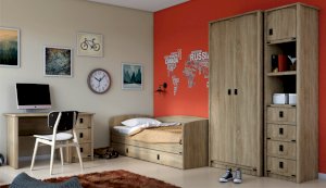 Детская Валенсия - отличное решение для детей любой возрастной категории. Все модули этой системы максимально функциональны и вместительны. Разнообразие модулей позволит Вам подобрать оптимальный комплект. Декоративные элементы создают яркий морской стиль этого комплекта. В этой модели предлагается более компактное решение двуспальной кровати, чем многоярусная кровать, съедающая слишком много пространства. При этом есть возможность превратить кровать в диван. Жемчужина модели – сундук. При относительно демократичной цене в комплекте использованы высококачественные материалы.
