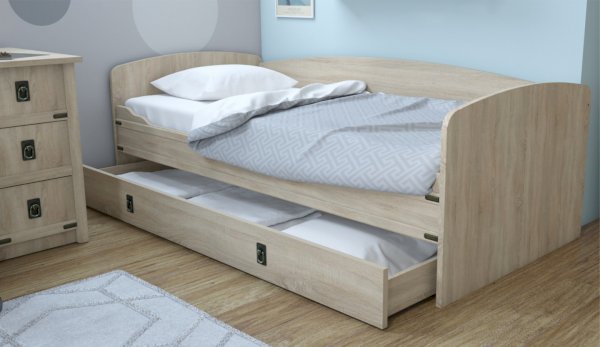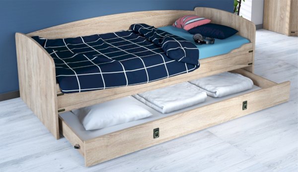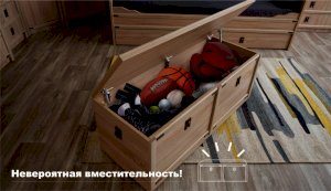 Ящик для белья можно использовать как дополнительное спальное место. Легко выдвигается за счет множества упоров в виде роликов.