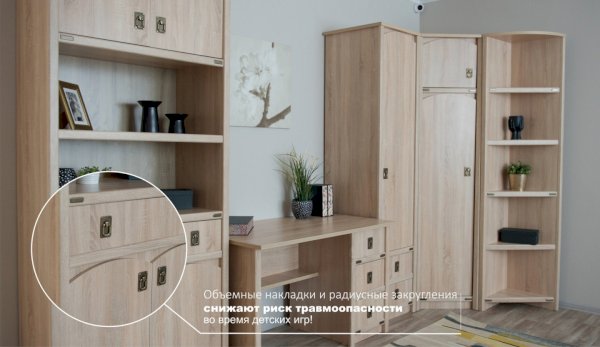 • Толщина всех крышек 22мм - столы и комоды значительно прочнее и долговечнее, чем из ЛДСП 16 мм, а вся мебель выглядит более солидно, как из массива дерева!