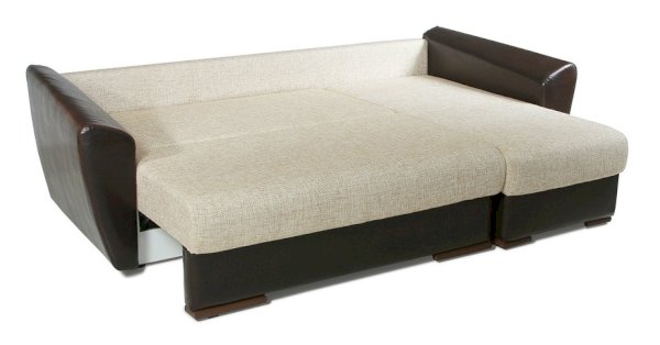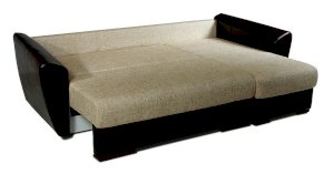 Это эксклюзивная модель углового дивана. Здесь все предусмотрено для комфорта пользователя. Усовершенствованная система трансформации «пантограф» дает возможность избежать повреждения пола или ковра при раскладывании, наполнение в виде независимых пружинных блоков в сочетании с мягкими подушками является оптимальным вариантом для комфортного, расслабляющего отдыха. Спальное место очень просторно, поскольку рассчитано на двух взрослых людей.