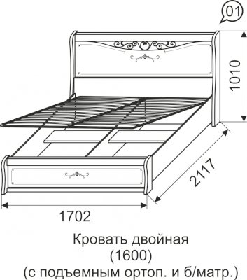 Кровать 1.6 двухспальная 01 с ПМ Афродита