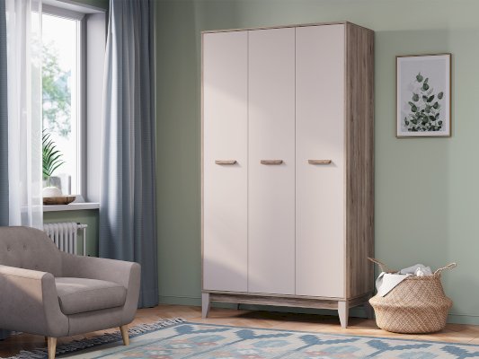 Трехстворчатый шкаф «Скандика» дополнит другие модули коллекции или впишется в готовый интерьер. Светлые оттенки и минималистичный дизайн делают эту модель универсальной. Шкаф «Скандика» станет удобным и комфортным пространством для ваших любимых вещей. За одной дверцей размещены две просторные открытые полки и секция с надежной хромированной штангой для вертикального хранения, а за другой – шесть открытых полок. Не универсальная сборка. Створки плотно фиксируются на магнитах.