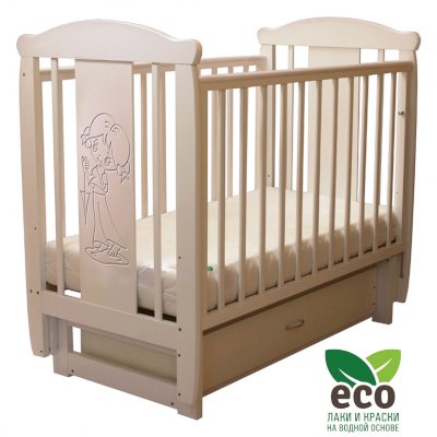 Кроватка декорирована фрезерным рисунком "Девочка". Уникальные фрезерные рисунки размером от 50 см на обеих спинках.