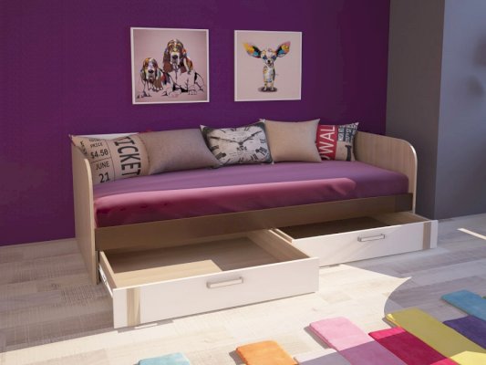 • Кровать имеет 2 выдвижных ящика.