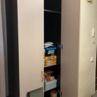 Подбирали шкаф под размеры проема в стене, идеально вписался