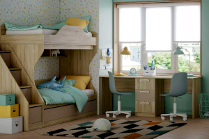 Уникальная конструкция стола поможет обустроить комфортный учебный уголок, если в семье двое детей. На рабочей поверхности модуля достаточно места для размещения не только письменных принадлежностей, но и ноутбука. Закругленные углы столешницы делают эксплуатацию модуля безопасной для детей. По окончании занятий ребенок сможет убрать книги и тетради в выдвижные ящики для поддержания порядка на рабочем месте.
